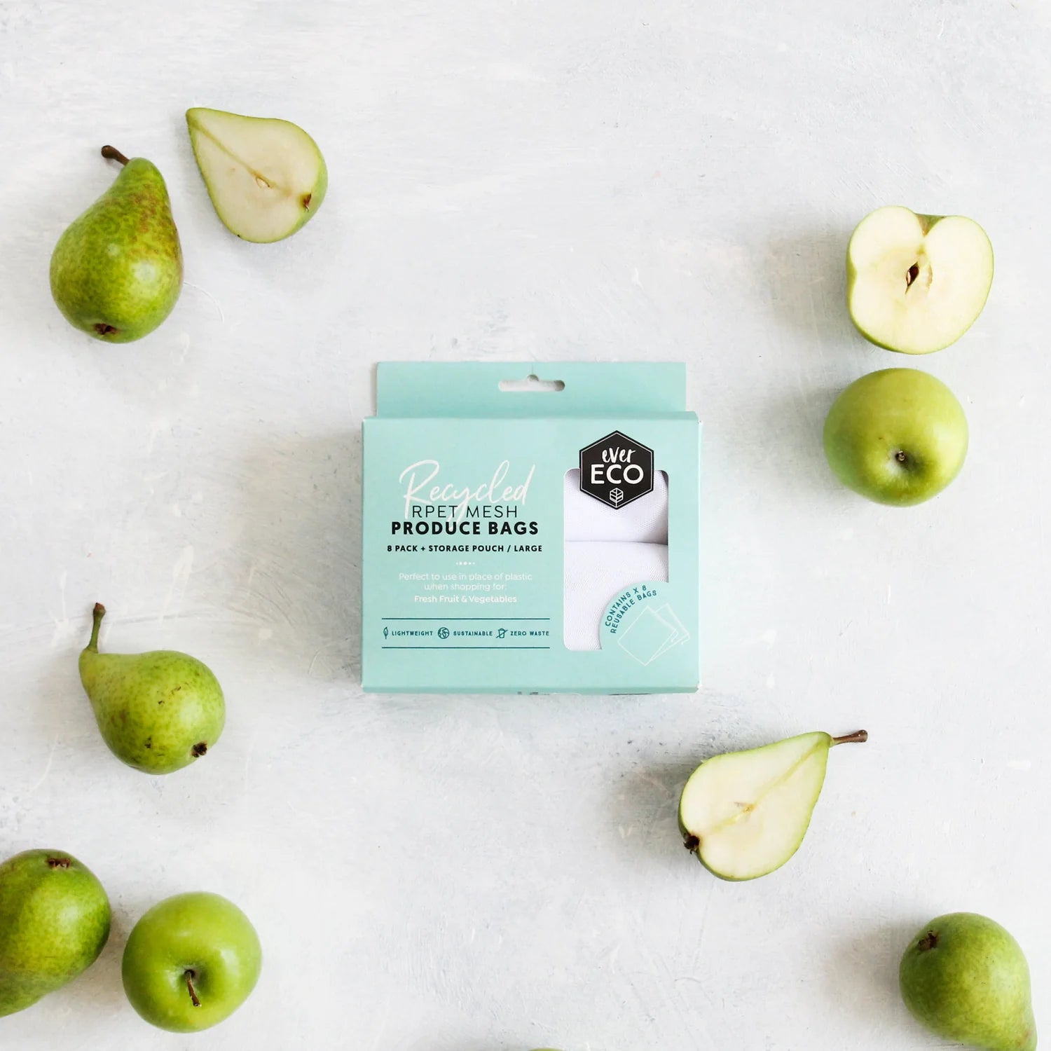 EVER ECO - REUSABLE FRUIT AND VEGE BAGS + STORAGE POUCH - 8 PACK