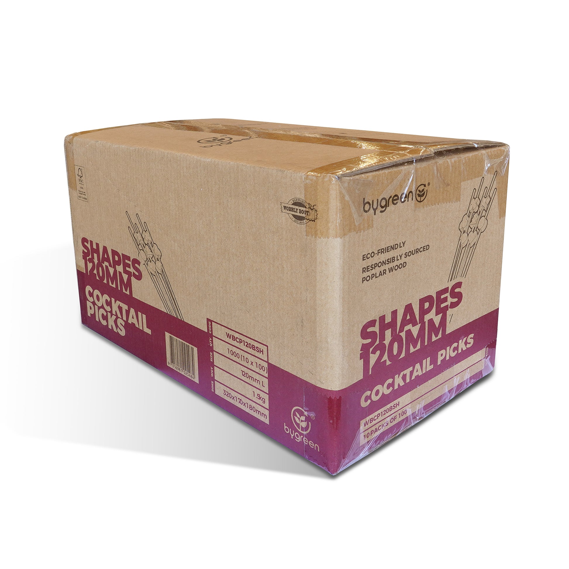Add a playful pop of colour to your drinks and appetisers with our 120mm Party Shapes wooden cocktail picks by Wobbly Boot Barware. Featuring seven fun designs — Black Club, Red Moon, Pink Cross, Green Tree, Red Diamond, Yellow Heart, and Red Circle — these picks bring instant flair to any event. Sold in individual packs of 100 or a full carton of 10 packs of 100 (1,000 in total).